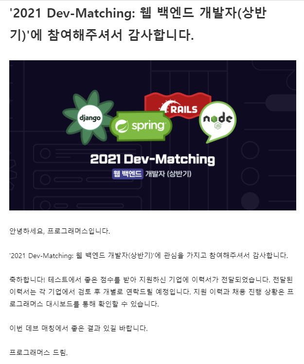 2021 Dev-Mathcing : 웹 백엔드 개발자