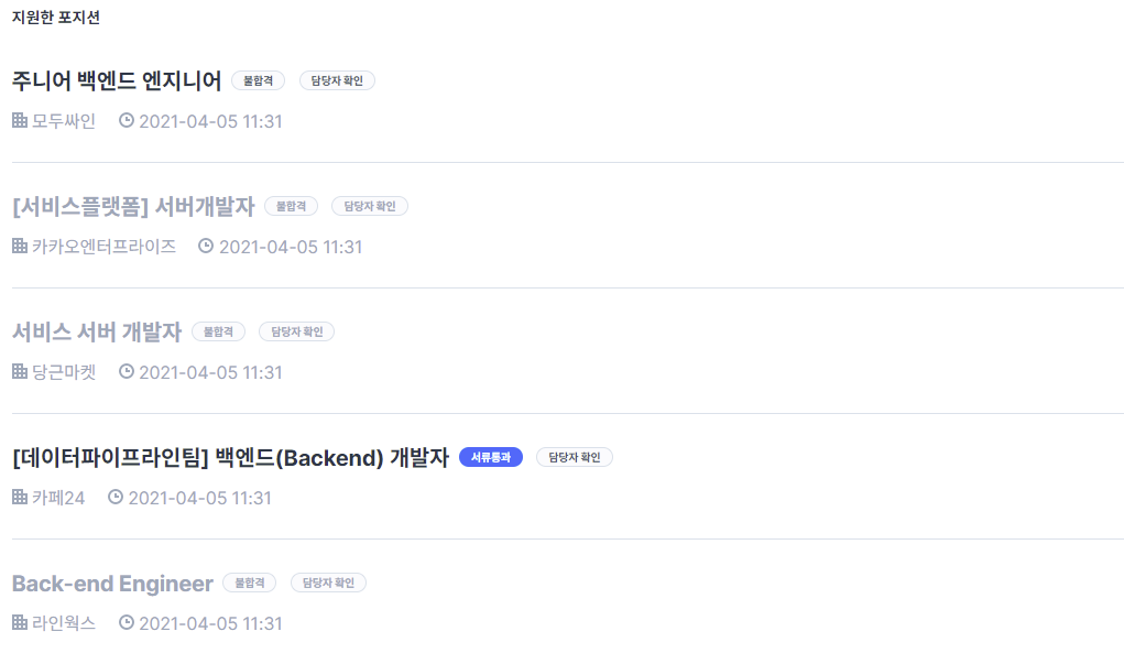 각 회사에서 이력서를 검토하고 결과를 메일로 알려준다. 다만 회사별로 검토, 연락하는 기간이 달라서 주기적으로 메일함을 확인해야 했다.