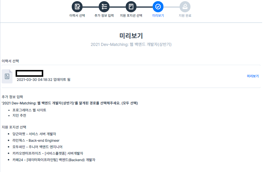 이 단계는 정말로 지원하기만 하는 것으로 코딩테스트를 통과해야 이력서가 회사에 전달된다.